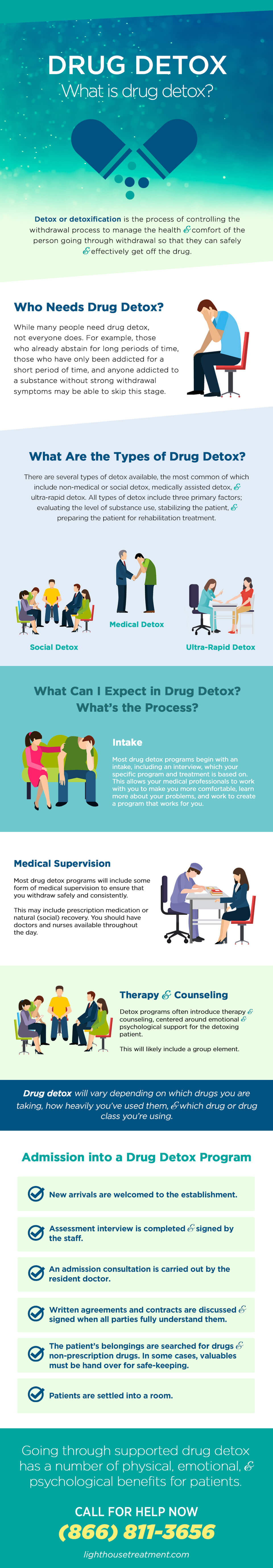 There are several effective detox options available, the most common of which include non-medical or social (available at Lighthouse Treatment Center), medication-assisted, and ultra-rapid. All options include three primary factors; evaluating the level of substance use and dependence, stabilizing the patient, and preparing the patient for rehabilitation treatment.